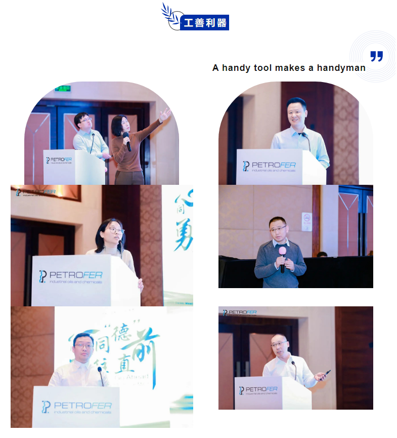 產(chǎn)品技術(shù)部李兆楠、戈瑋瑋、闞樹波、王可望等產(chǎn)品經(jīng)理,分享了德潤寶工業(yè)潤滑及造紙化學(xué)品產(chǎn)品的概念、主要特點(diǎn)、作用表現(xiàn)、使用推薦等知識(shí)經(jīng)驗(yàn)。